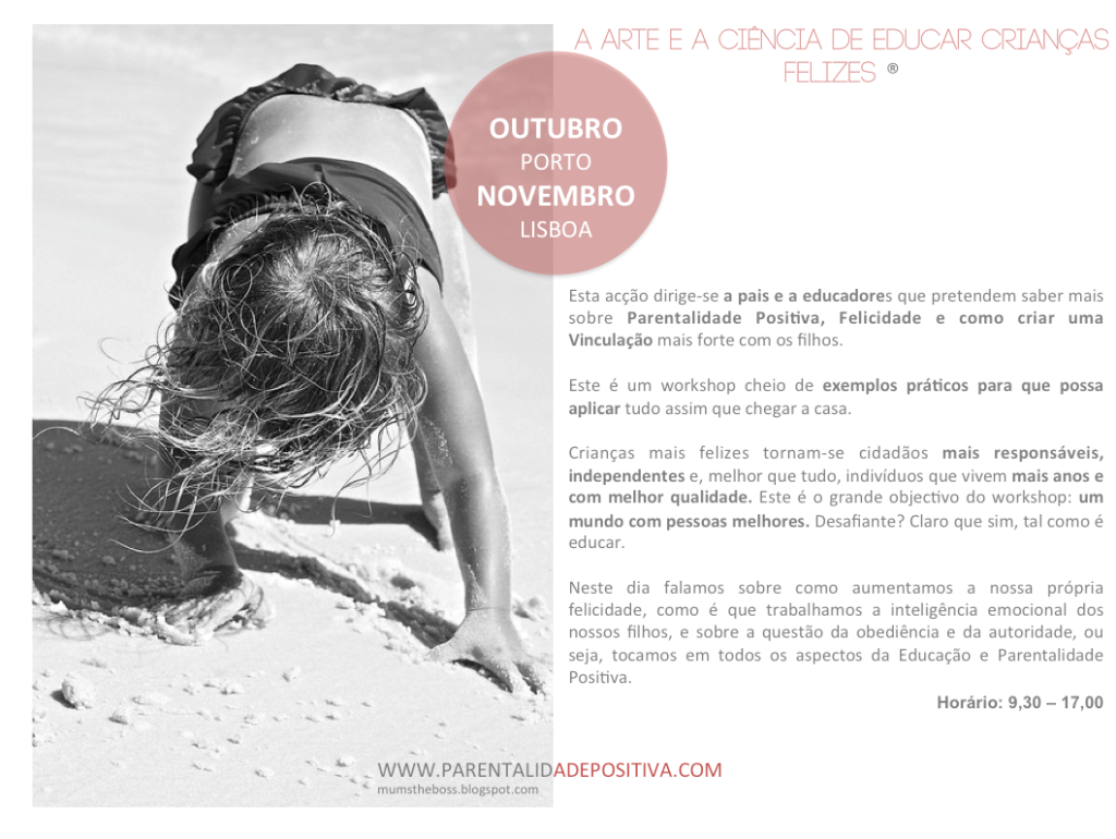 Eu aceitei este desafio. Quero aprender mais porque nunca sabemos tudo. E porque nisto de ser mãe podemos sempre conhecer estratégias para que as coisas corram [ainda] melhor. Mais informações aqui. Ainda há vagas para Lisboa, dia 9 ou 10 de Novembro.