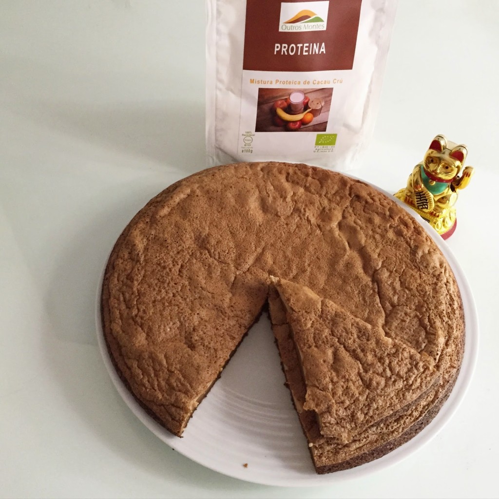(a fingir-que-sou-um-bolo: claras e mistura protéica de cacau crú com a maca.)