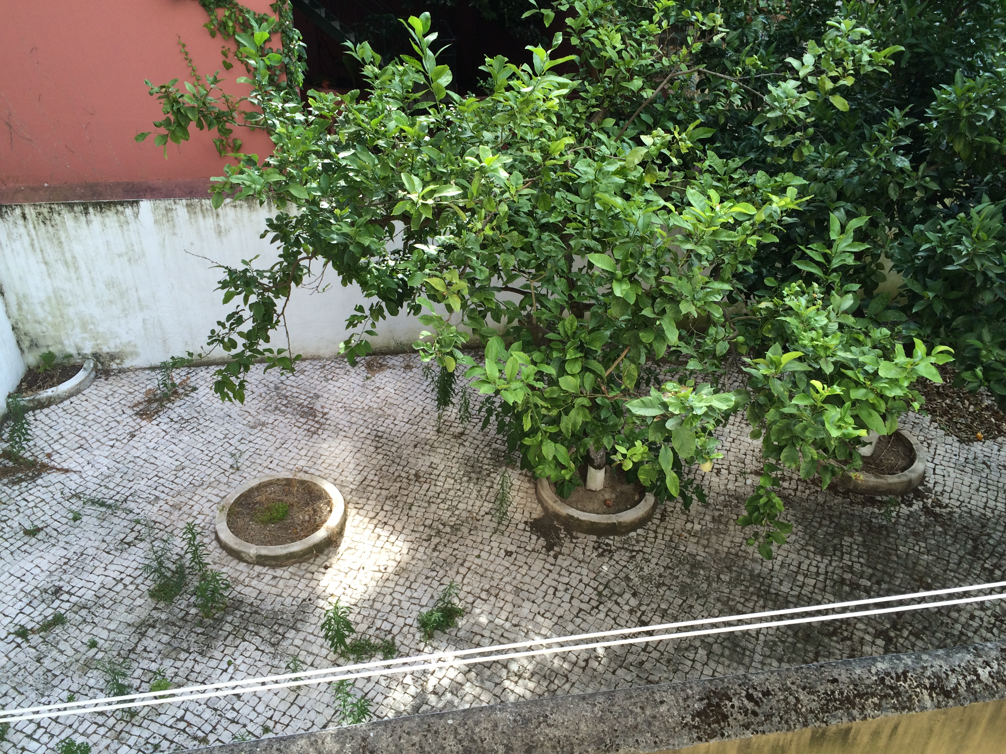 o nosso páteo era assim. e apesar de ser exactamente aquilo que nos fez querer esta casa assim que a vimos [adoro o nosso limoeiro e as flores da laranjeira na primavera] não estava exactamente como eu gostava de imaginar um lugar para passar tardes quentes na conversa. existe um espaço para o cães [que ainda não existia nesta fotografia] mas o resto do espaço ficou livre.