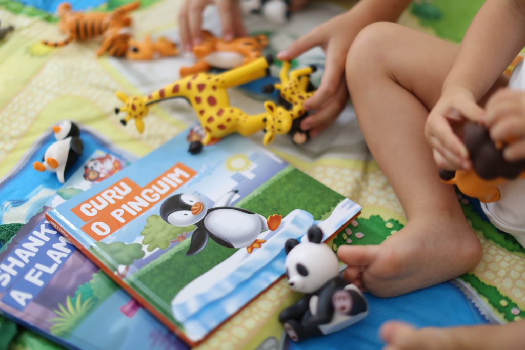 Chama-se Os Meus Animais do Zoo e é uma colecção que junta isto mesmo: um livro e um brinquedo (saem dois animais de cada vez). Há os mamíferos maiores, onde estão o elefante, a girafa ou o rinoceronte, por exemplo. Os grandes felinos, com tigres e leões. Os diferentes tipos de primatas, os animais da savana e os do mar, como pinguins ou golfinhos. Para cada animal, há um personagem principal — Lumba, o leão, Sandy, a girafa, Bongo, o chimpanzé ou Lucy, o canguru.